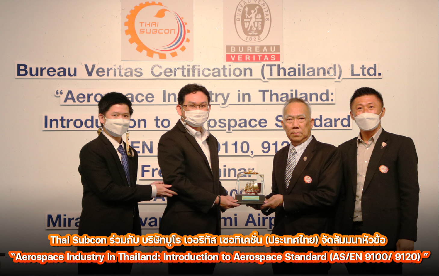 ในวันศุกร์วันที่ 5 สิงหาคม 2565 เวลา 09.00 - 12.00 น. ณ โรงแรม มิราเคิล สุวรรณภูมิ แอร์พอร์ต สมาคมส่งเสริมการรับช่วงการผลิตไทย (Thai Subcon) ร่วมกับบริษัทบูโร เวอริทัส เซอทิเคชั่น (ประเทศไทย) จำกัด (BV) ได้ร่วมกันจัดสัมมนา“Aerospace Industry in Thailand: Introduction to Aerospace Standard (AS/EN 9100/ 9120) ”
