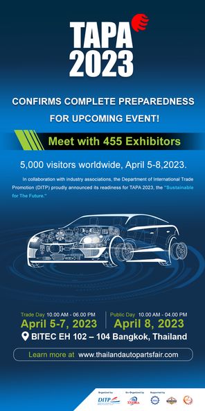 In collaboration with industry associations, the Department of International Trade Promotion (DITP) confirms complete preparedness for TAPA 2023: Thailand International Auto Parts & Accessories Show, that the great return after five years, under the concept of "Sustainable for The Future."