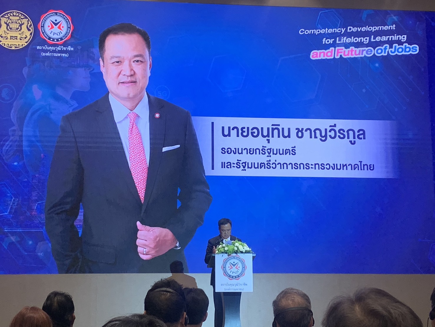 นายอนุทิน ชาญวีรกูล รองนายกรัฐมนตรีและรัฐมนตรีว่าการกระทรวงมหาดไทย เป็นประธานเปิดงานสัมมนานานาชาติ “Competency Development for Lifelong Learning and Future of Jobs” จัดโดยสถาบันคุณวุฒิวิชาชีพ (องค์การมหาชน)