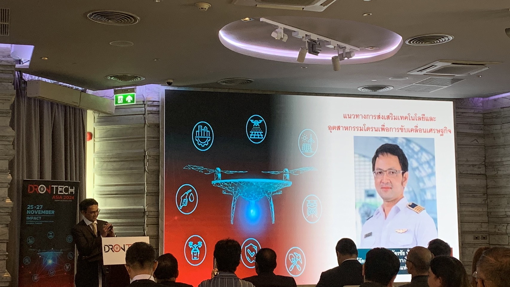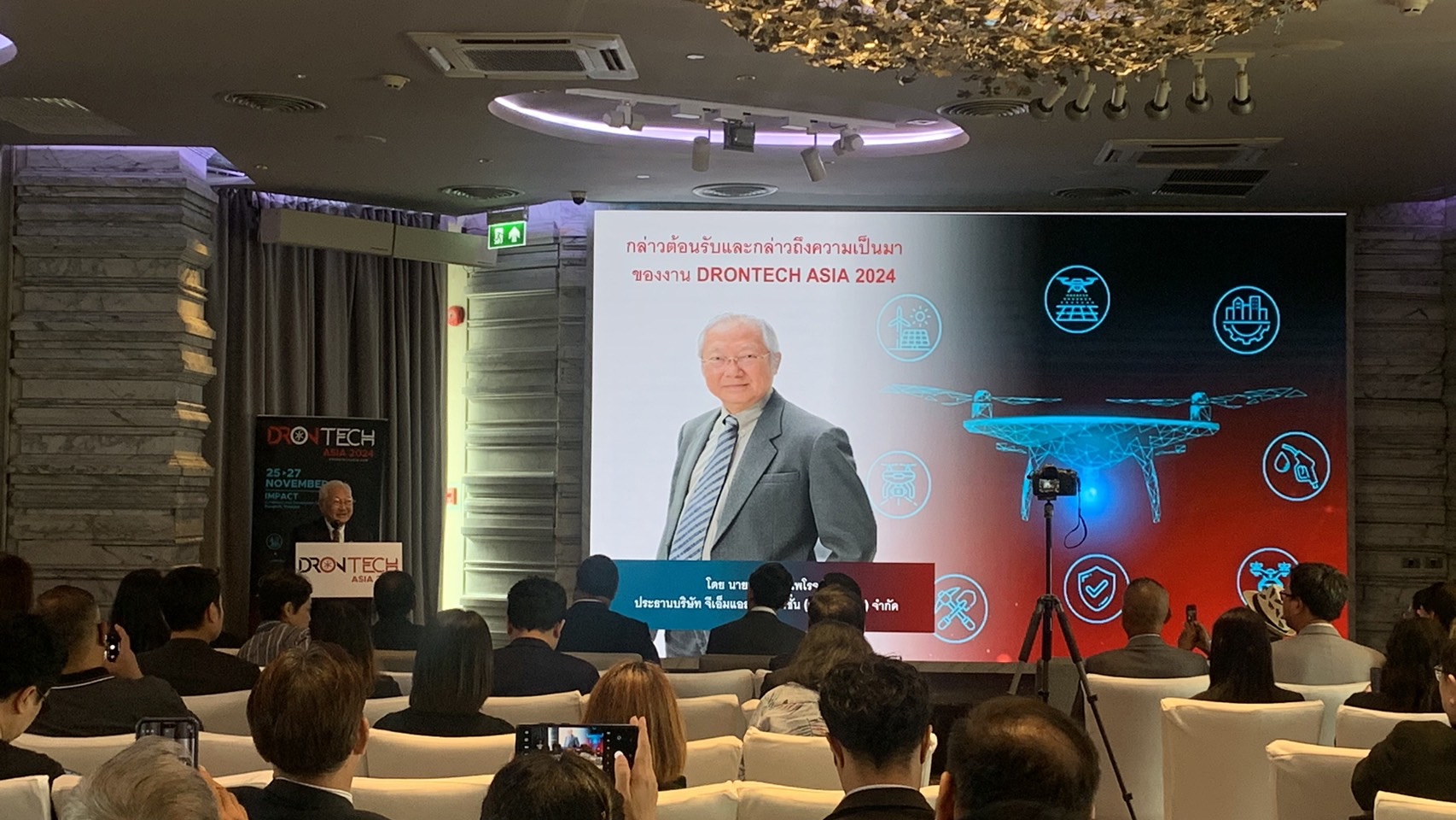 'DronTech Asia 2024' โดยมี นายมนู เลียวไพโรจน์ ประธาน บริษัท จีเอ็มแอล เอ็กซิบิชั่น (ประเทศไทย) จำกัด ในฐานะผู้จัดงาน กล่าวถึงควาทสำคัญของงานว่า ปัจจุบันโดรนมีบทบาทในหลายอุตสาหกรรม ช่วยลดทอนการทำงานของแรงงานมนุษย์ สร้างประโยชน์ให้เกิดขึ้นทางการค้า อุตสาหกรรมโดรนเริ่มมีทิศทางการขยายตัวและเติบโตอย่างมีนัยสำคัญ เราจึงอยากเป็นส่วนหนึ่งในการขับเคลื่อนและสนับสนุนอุตสาหกรรมนี้