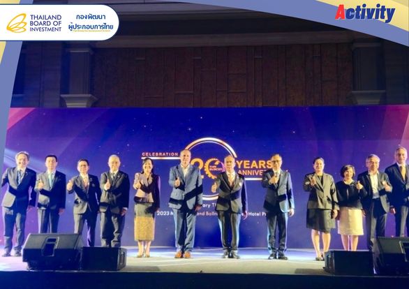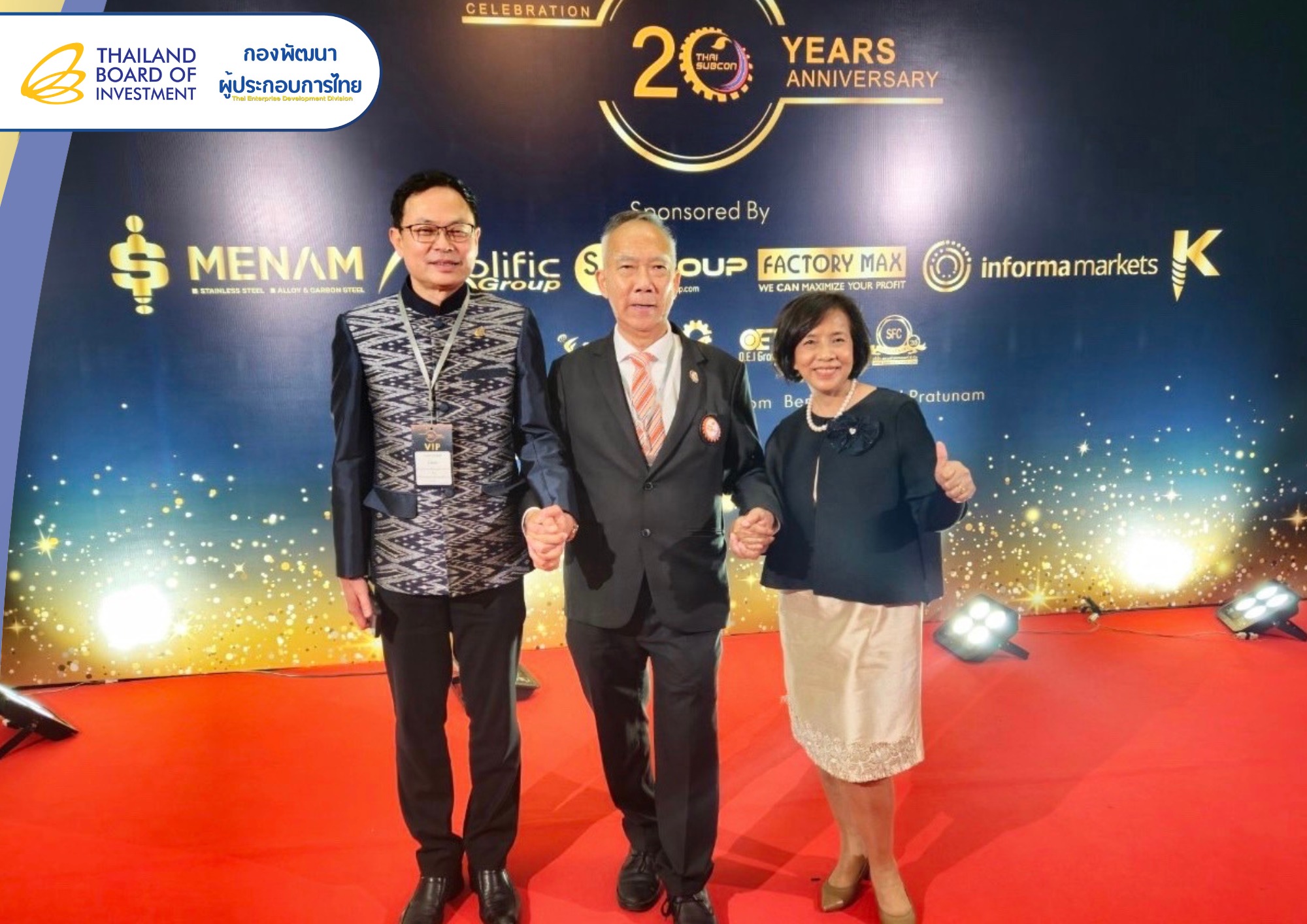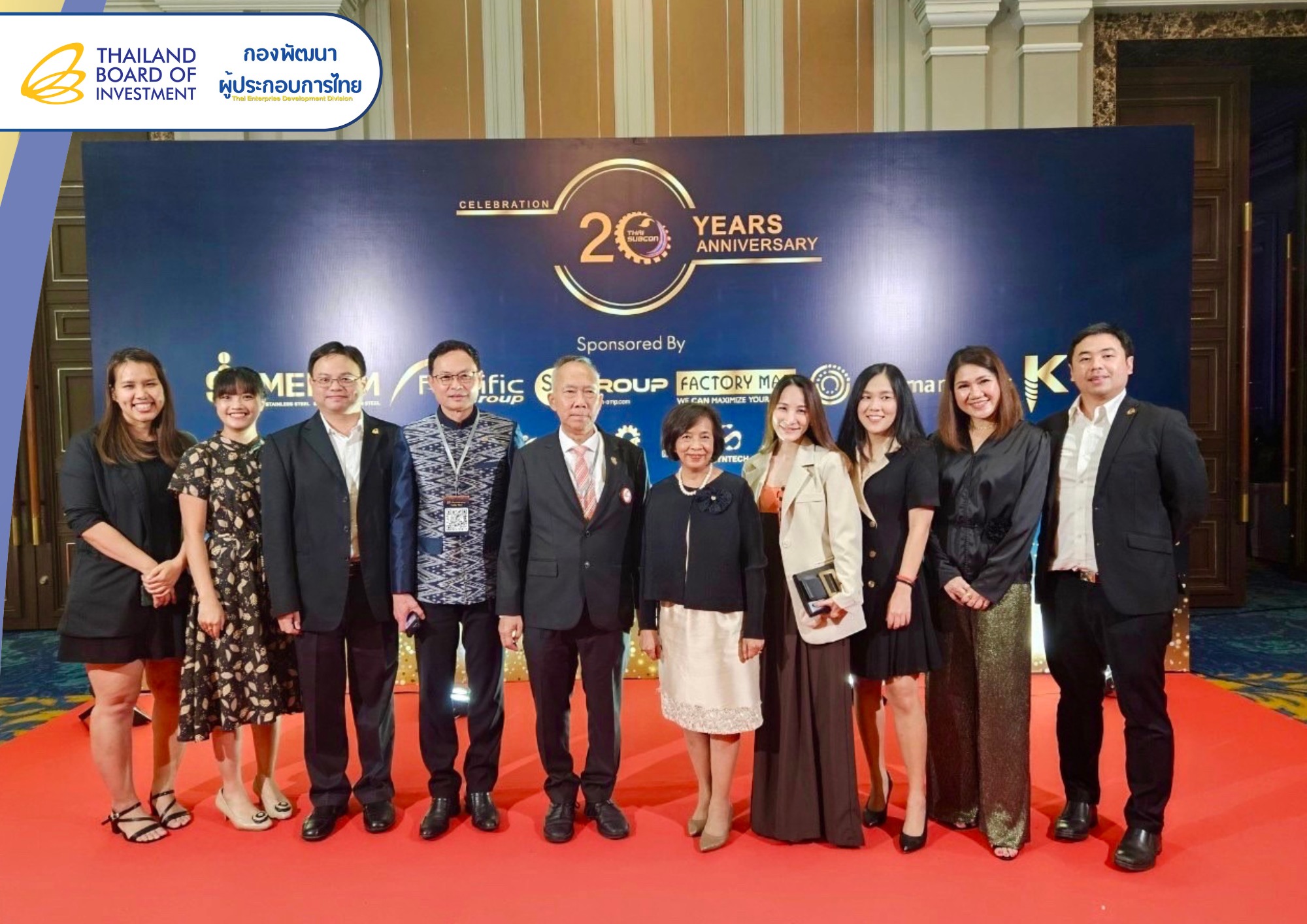 เมื่อวันศุกร์ที่ 24 มีนาคม 2566 นายชนินทร์ ขาวจันทร์ รองเลขาธิการ บีโอไอ และนางสาวซ่อนกลิ่น พลอยมี รองเลขาธิการ บีโอไอ พร้อมด้วยนายอรรจน์สิทธิ สร้อยทอง ผู้อำนวยการกองพัฒนาผู้ประกอบการไทย และ คณะเจ้าหน้าที่กองพัฒนาผู้ประกอบการไทย เข้าร่วมแสดงความยินดีกับคุณเกียรติศักดิ์ จิระขจรวงศ์ นายกสมาคม ในโอกาสฉลองครบรอบ 20 ปีสมาคมส่งเสริมการรับช่วงการผลิตไทย