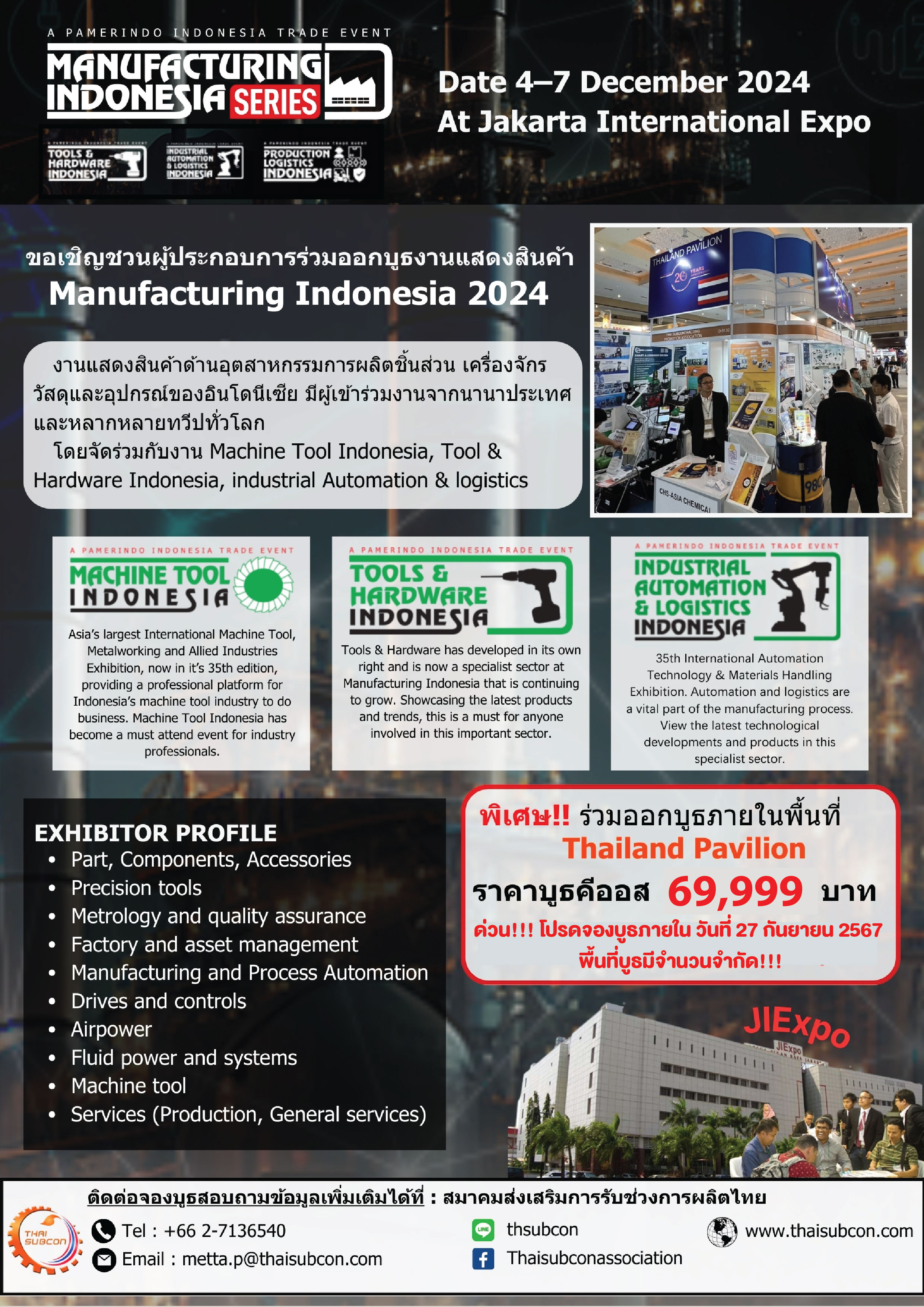 โดยจัดร่วมกับงาน Machine Tool Indonesia, Tool & Hardware Indonesia, industrial Automation & logistics
