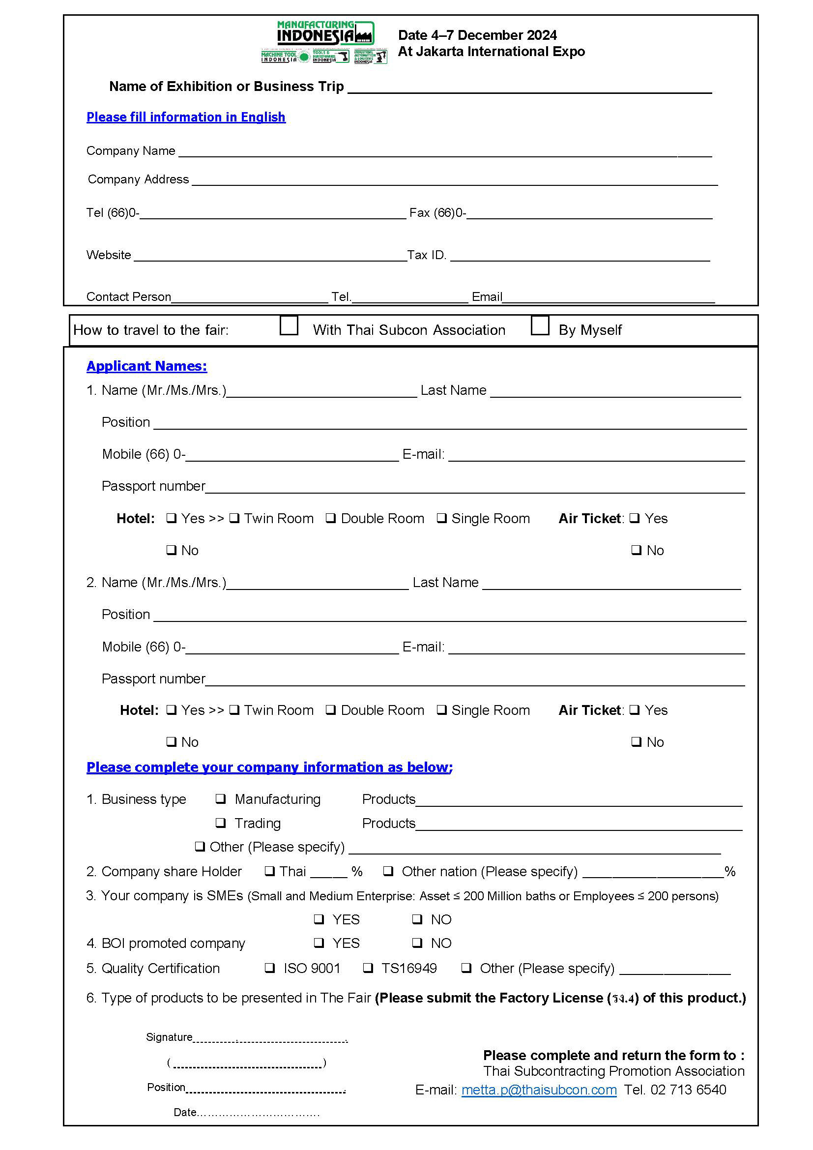 Tel : +66 (0)2-7136540-1 Email : metta.p@thaisubcon.com