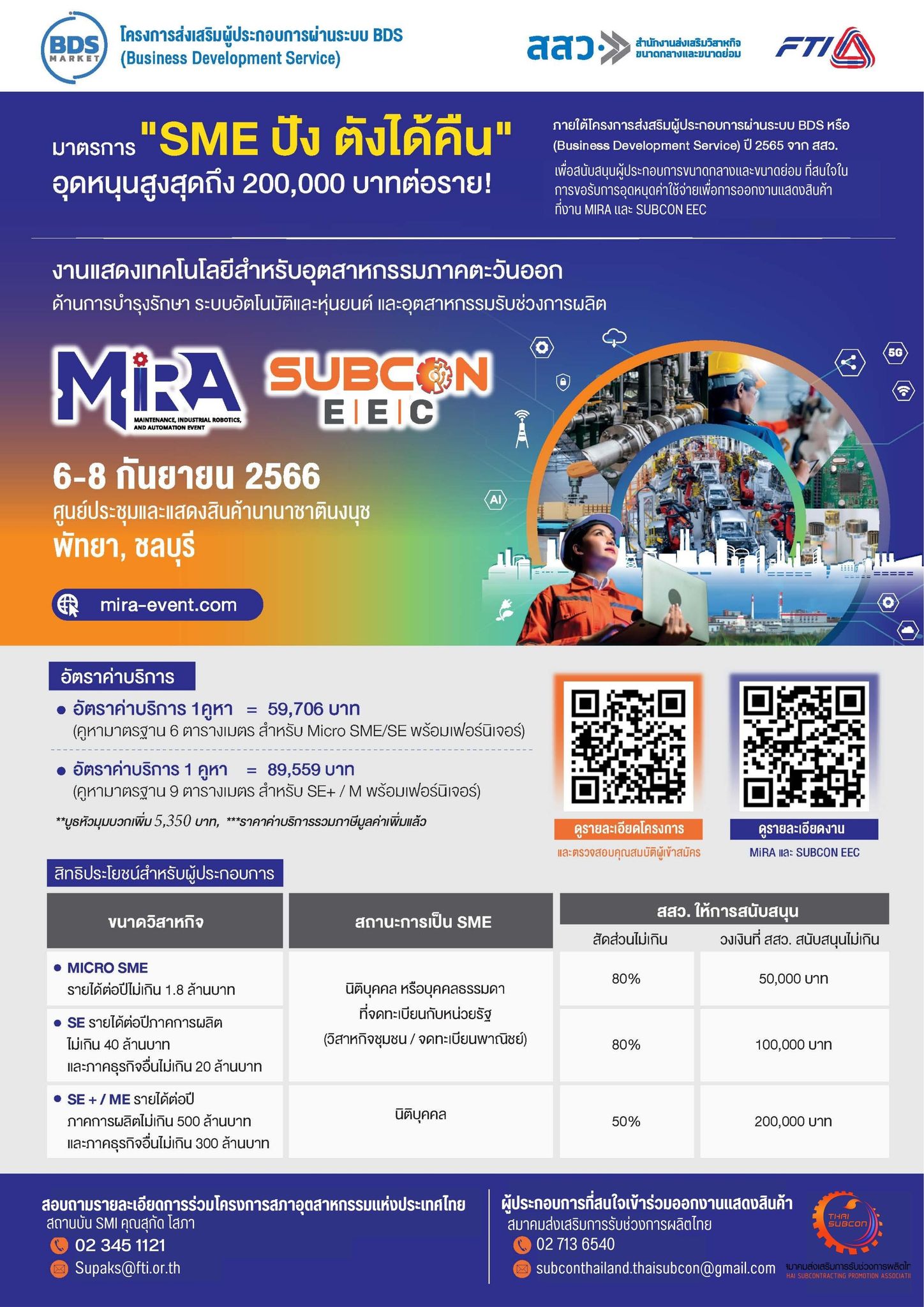 สสว. เพื่อสนับสนุนผู้ประกอบกลางและขนาดย่อม ที่ต้องการขอรับการสนับสนุนในการออกงานแสดงสินค้า Subcon EEC