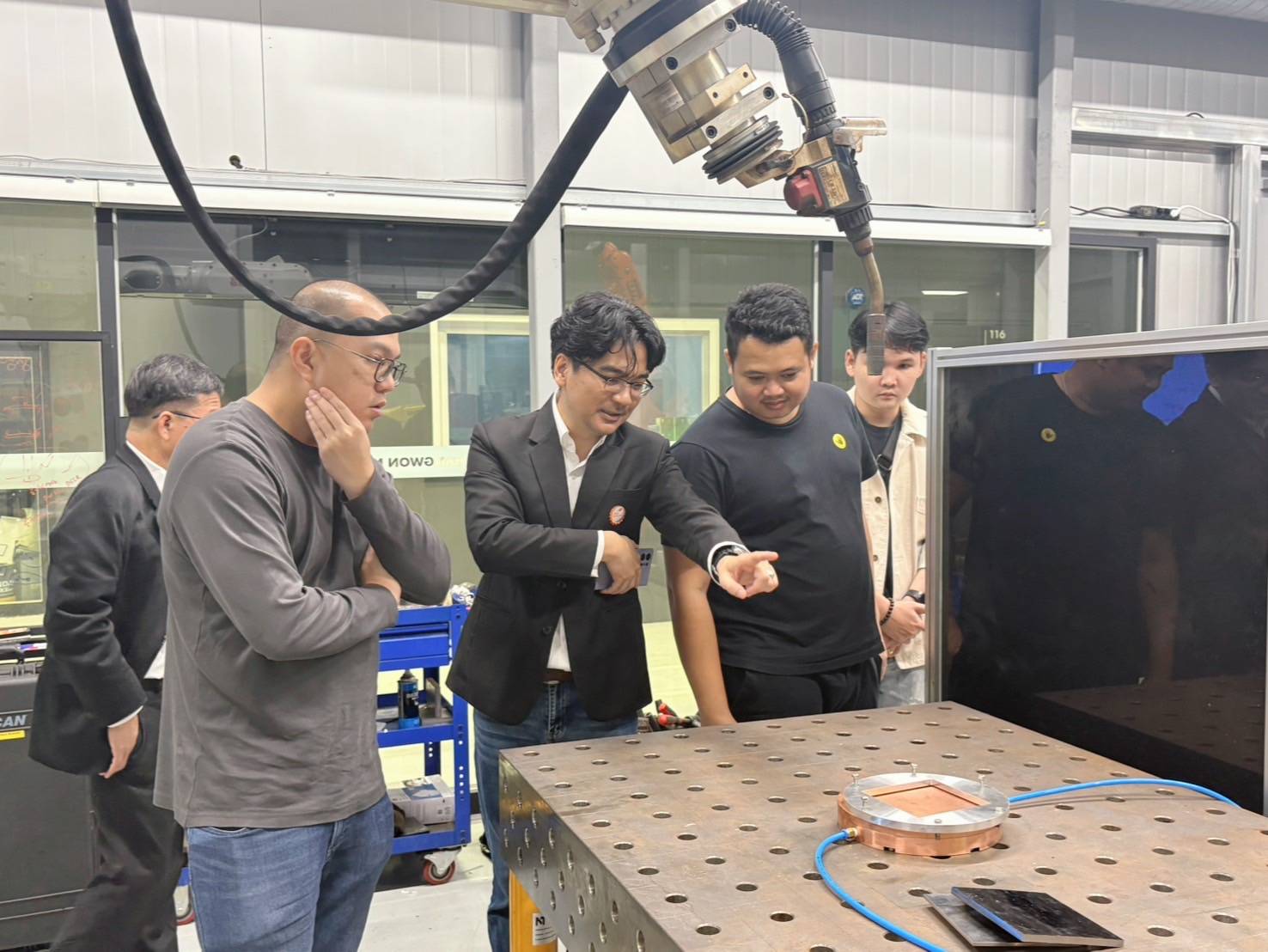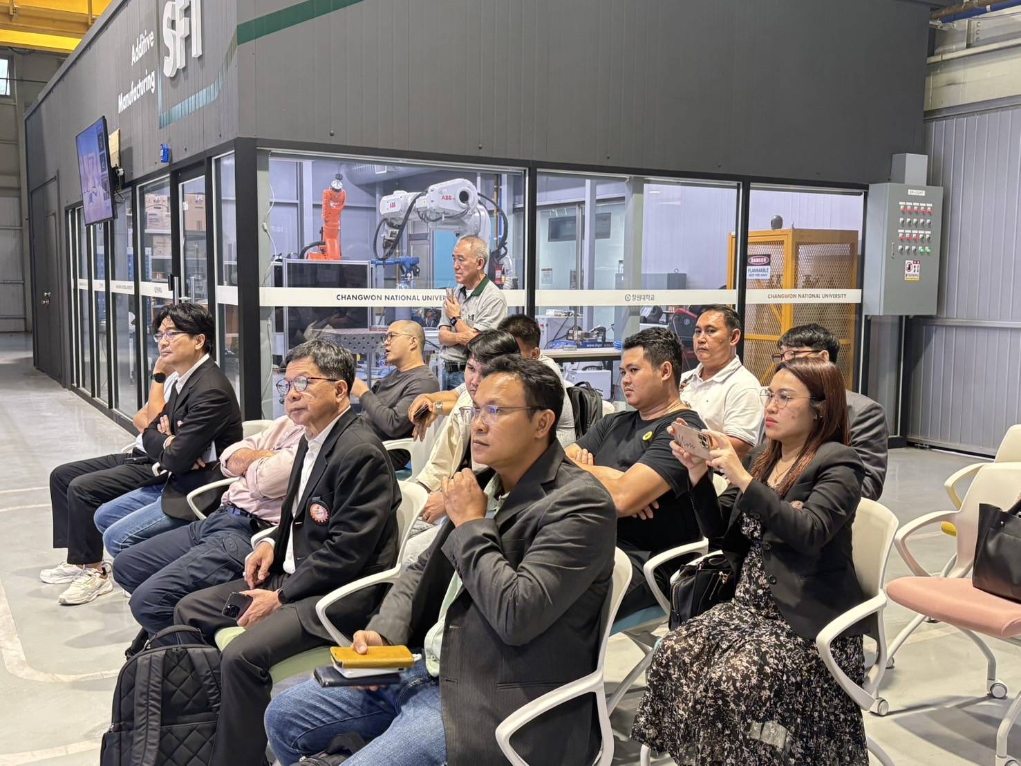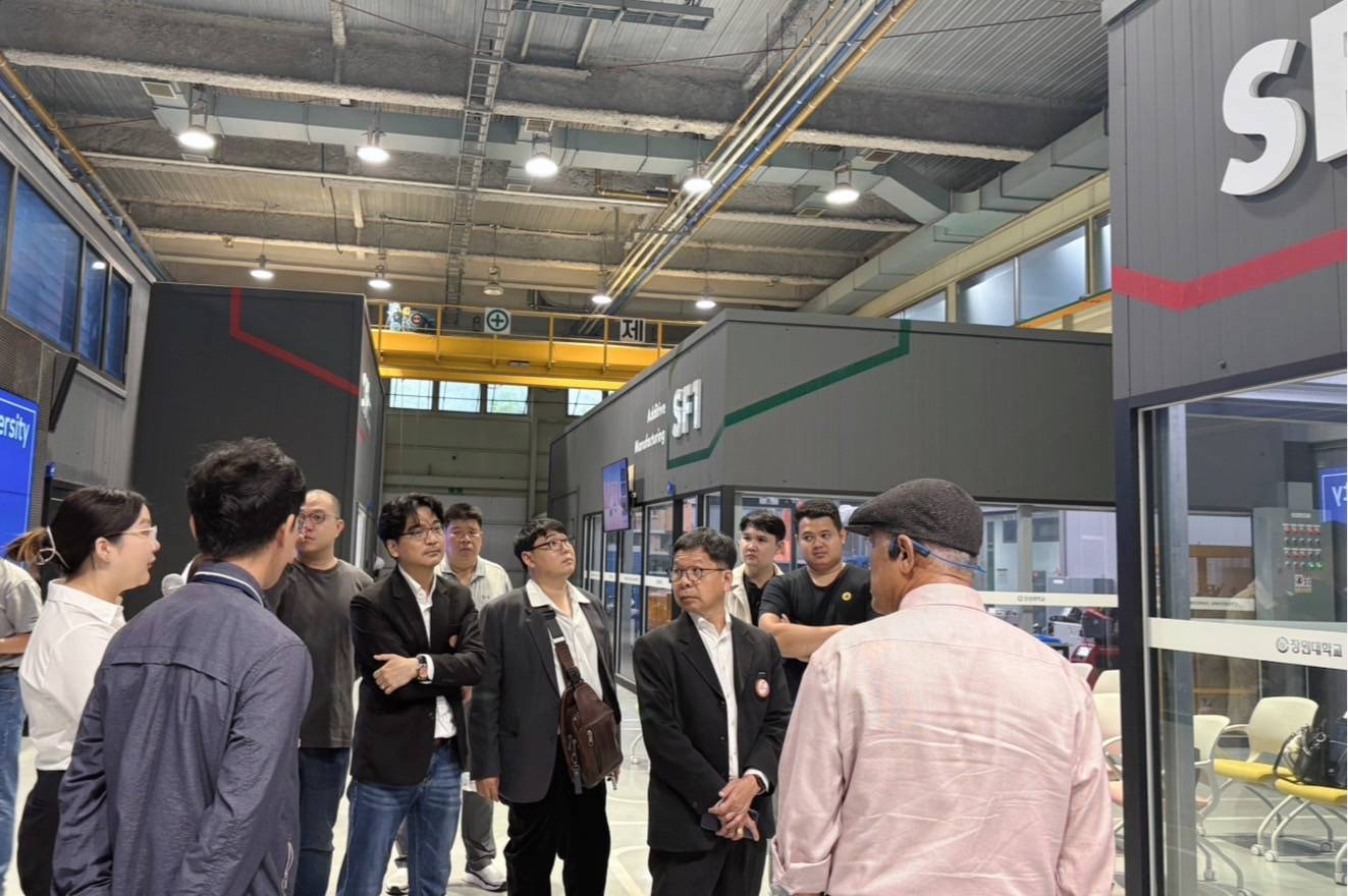 ช่วงเช้า คณะจากสมาคม ได้เข้าเยี่ยมชมศูนย์ Smart Factory ที่ Changwon National University ซึ่งมุ่งเน้นการพัฒนานวัตกรรมและเทคโนโลยีการผลิตที่ทันสมัย เป็น Smart Manufacturing Technology Center พร้อมทั้งพาคณะเดินชมห้องปฏิบัติการต่างๆ ของศูนย์ ที่ใช้สำหรับฝึกสอนนักศึกษา และพัฒนาผลิตภัณฑ์ร่วมกับผู้ประกอบการ เช่น Design and Analysis lab, Additive Manufacturing lab เป็นต้น