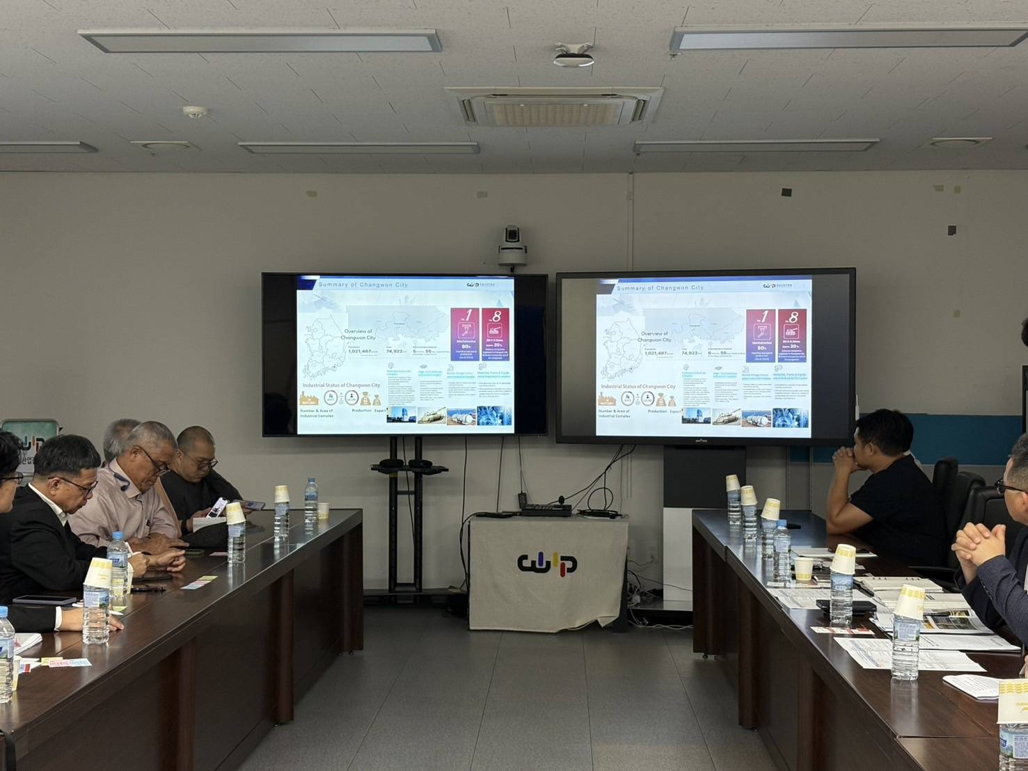 ช่วงบ่าย คณะได้เข้าร่วมประชุมกับหน่วยงาน Changwon Industry Promotion Agency (CWIP) ซึ่งมีภารกิจในการสนับสนุนและส่งเสริมอุตสาหกรรมใน Changwon ทั้งสองหน่วยงานได้มีโอกาสแลกเปลี่ยนข้อมูลและทำความรู้จักกัน