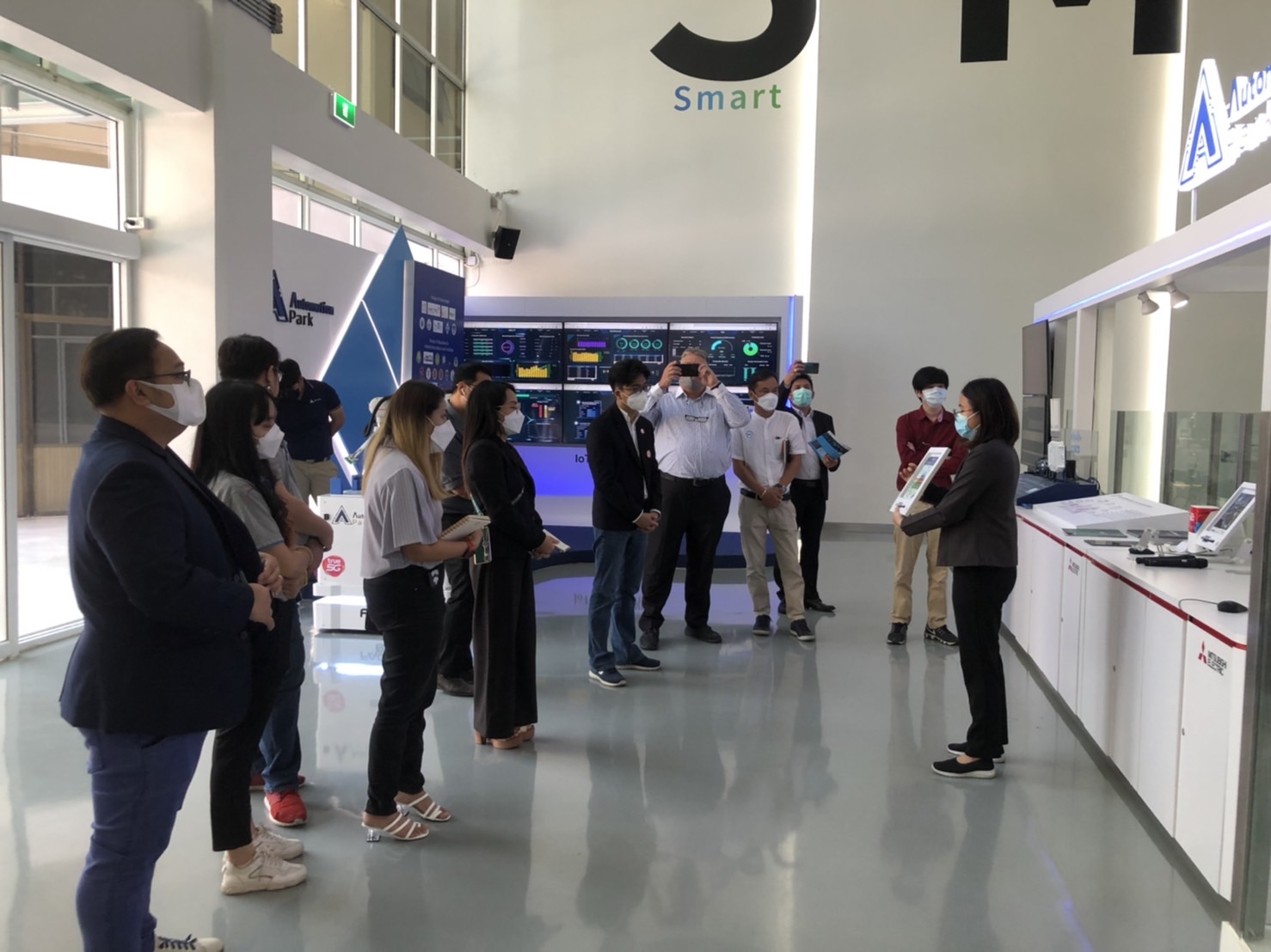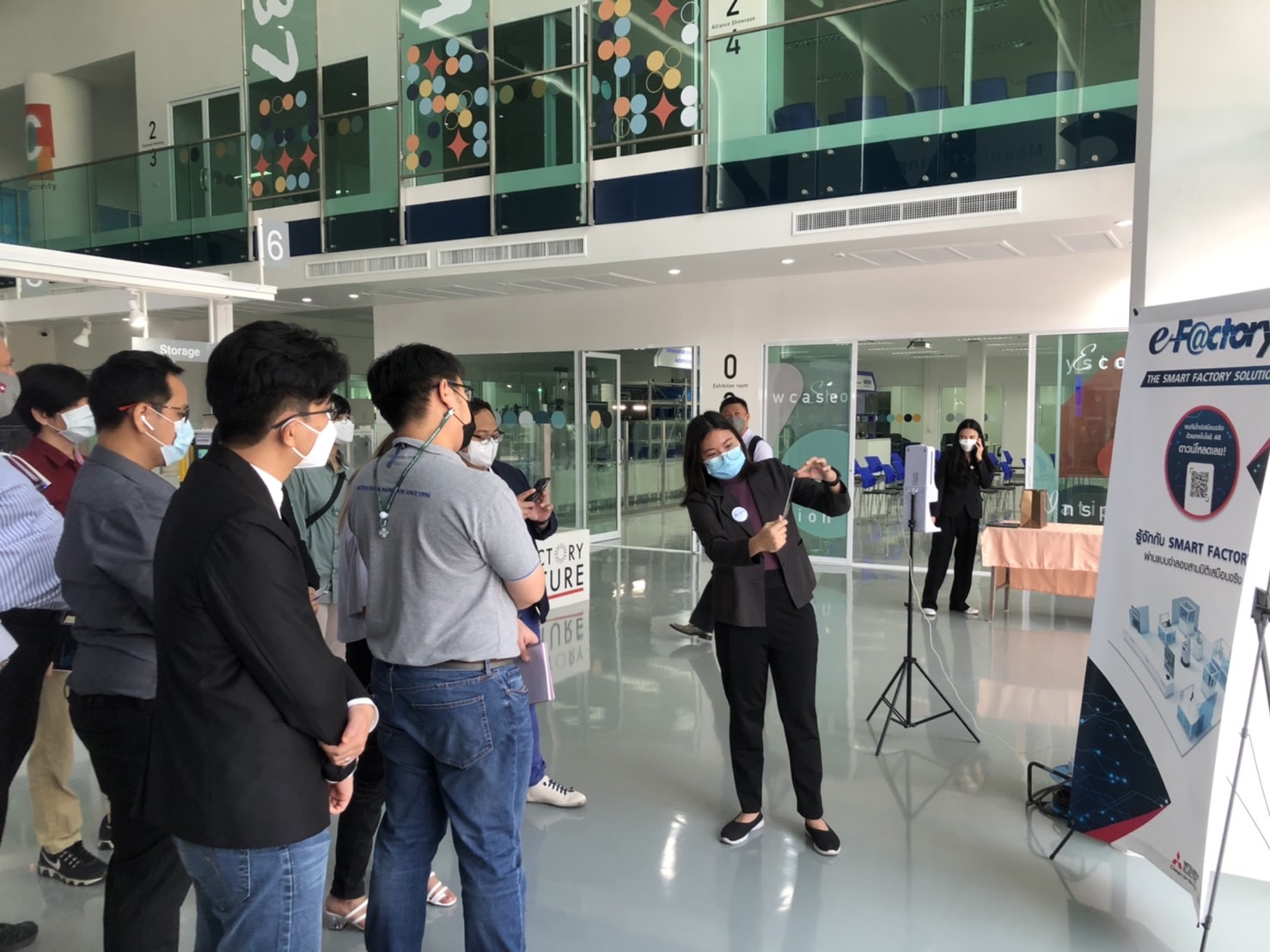 โดยสมาชิกได้เยี่ยมชมศูนย์จัดการเรียนรู้ Smart factory model line ที่ผสมผสานการนำเทคโนโลยีด้านระบบอัตโนมัติโรงงาน และเทคโนโลยีด้านสารสนเทศเข้าด้วยกันและพบกับ 7 เทคโนโลยีหลักที่นำมาใช้ใน e-F@ctory Model line และต้นแบบไลน์การผลิตเพื่อก้าวสู่ยุคอุตสาหกรรม 4.0 อย่างยั่งยืน ด้วยแนวคิด e-F@ctory ที่สนับสนุนการพัฒนาโรงงานให้เป็น Smart Factory อย่างแท้จริง ผสานระหว่างระบบ Factory Automation และระบบ IT โดยมุ่งเน้นการเชื่อมต่อของข้อมูลแบบ Real-time ในทุกระดับชั้น เพื่อให้ลูกค้าสามารถใช้ทรัพยากรที่มีอยู่ให้เกิดประโยชน์ ได้แก่