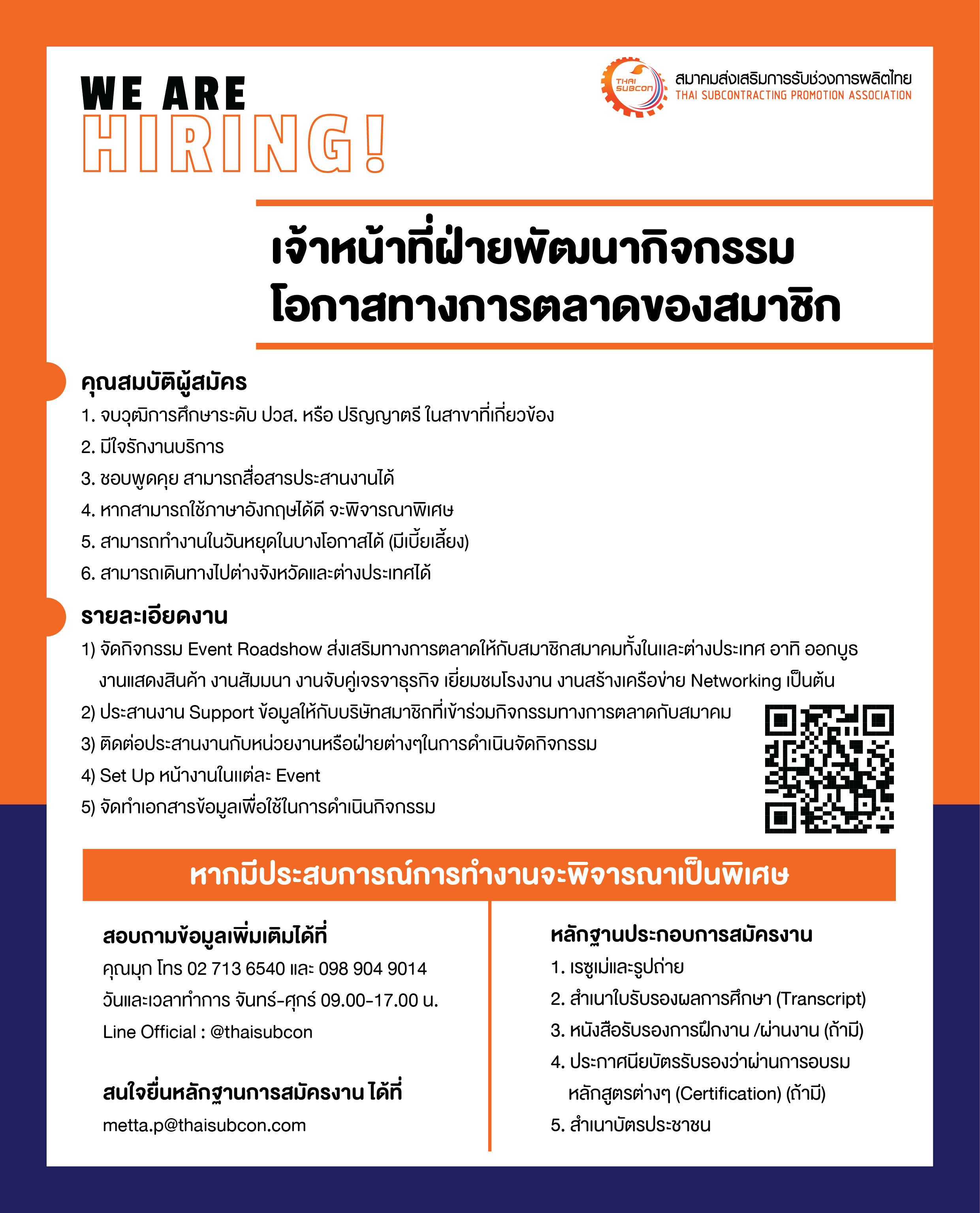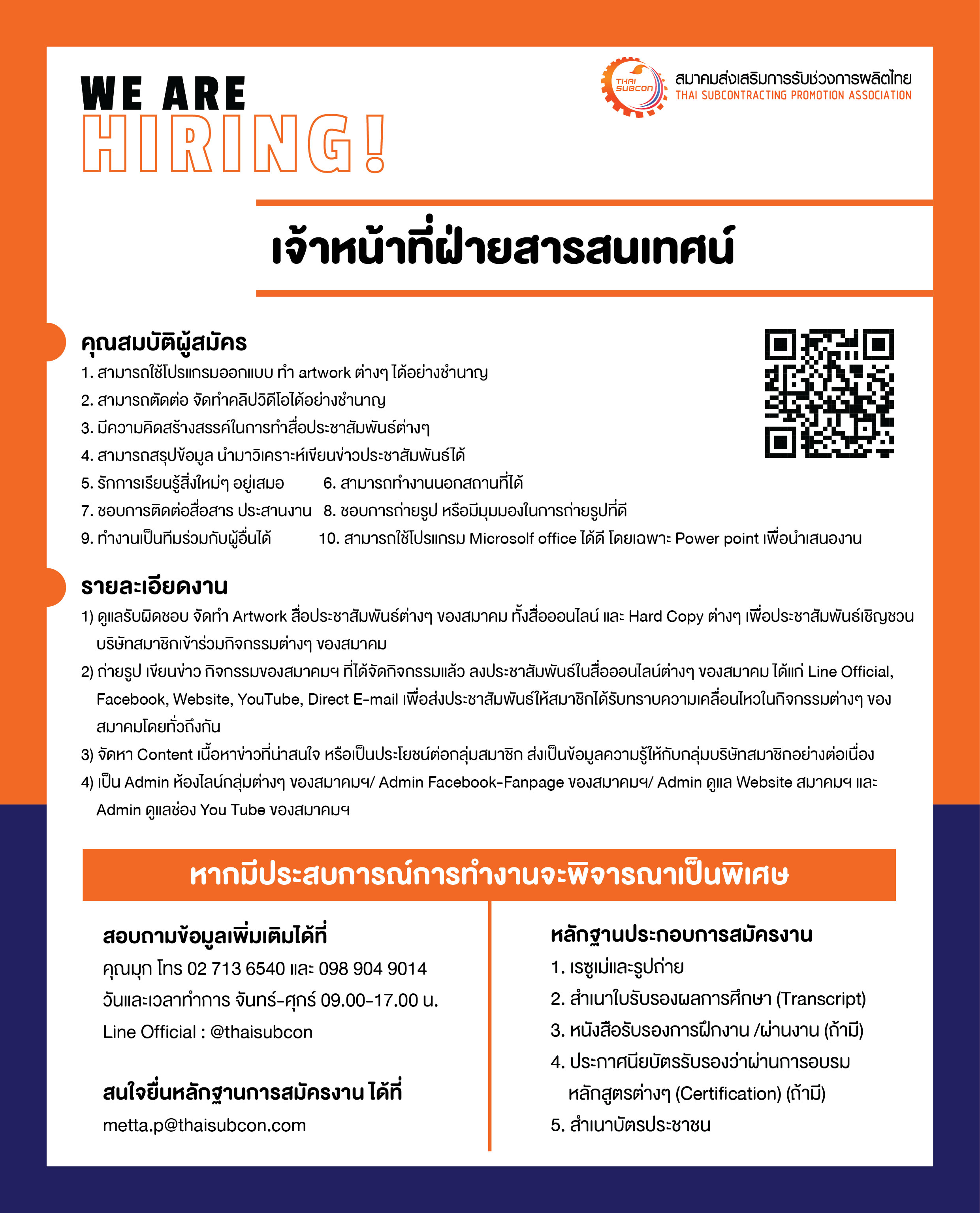 ส่ง Resume และข้อมูลการสมัครมาได้ที่อีเมล: