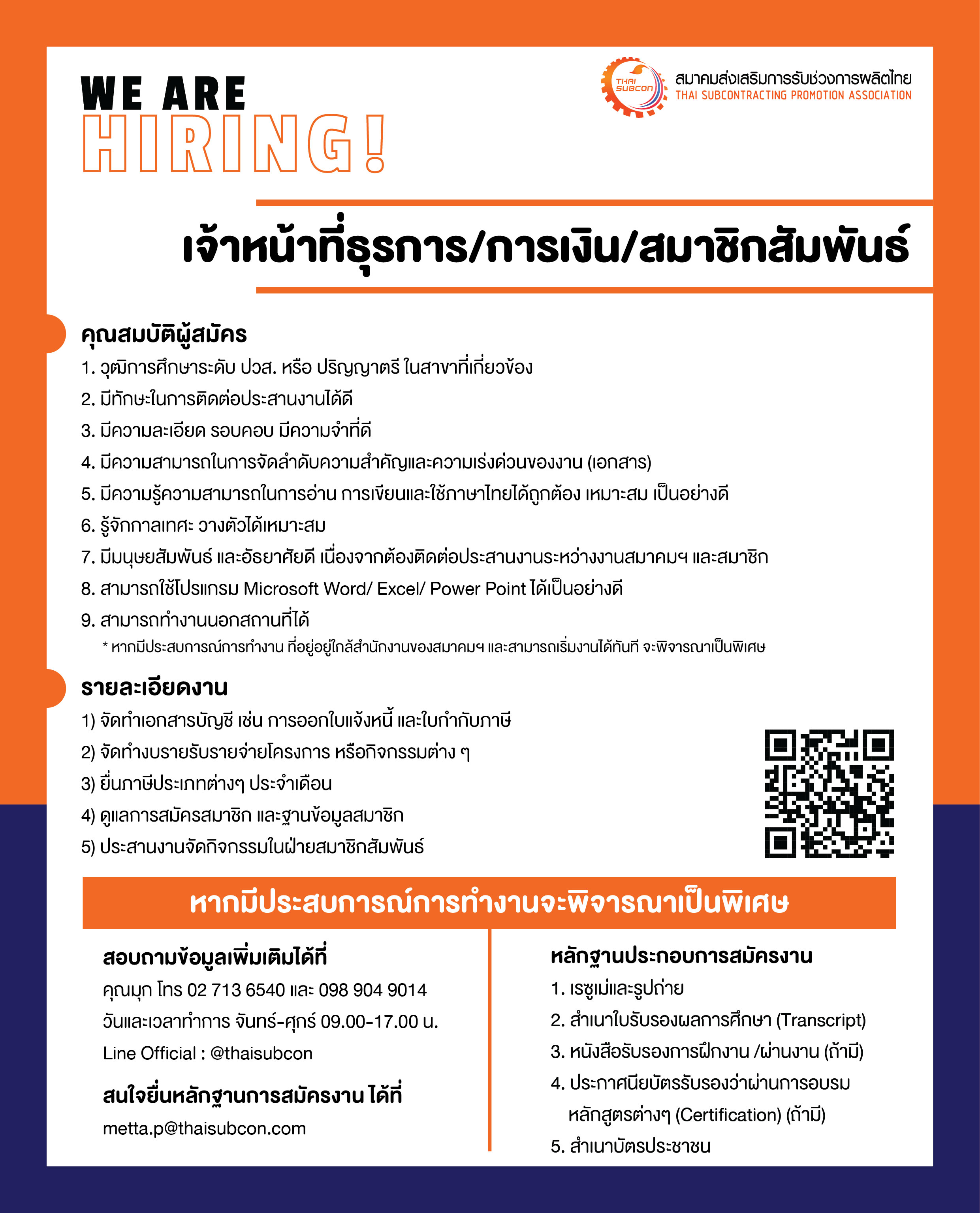 "เจ้าหน้าที่ธุรการ/การเงิน/สมาชิกสัมพันธ์"